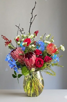 花材 :帝王花、白蠟梅、小飛燕、針墊花、紅玫瑰