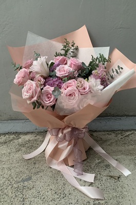 花材 :進口玫瑰、繡球花、尤加利葉與其他配材