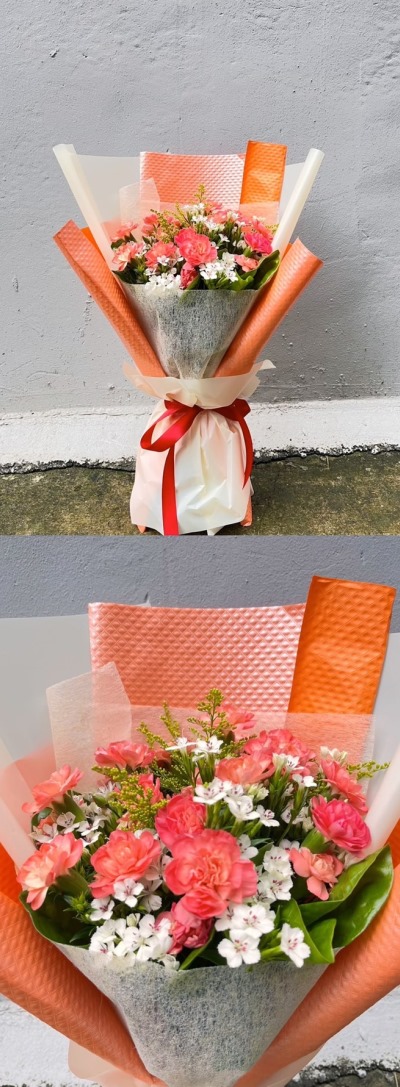 花材 :康乃馨、深山櫻、尤加利葉、麒麟草